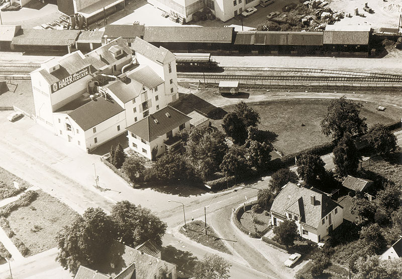 Anbau des neuen Silos zur Aufnahme von Halb-fertigfabrikaten und der Einsatz moderner Verpackungsmaschinen. Durch weitere umfangreiche Investitionen wandelte sich der Mühlenbetrieb im Laufe der Jahrzehnte zu einem modernen Nährmittel-, Schäl- und Spezialmühlenwerk.